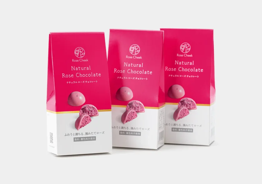 ローズウォーターとバラの花びらのペーストを練り込んだ「ナチュラルローズチョコレート」。